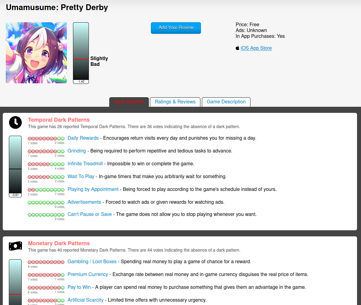 On the topic of online games: Since many of them are so predatory in design, is there something like a catalog, where you can look up the dark patterns in games like weighted tags? I found this, but it is only for mobile games. https://www.darkpattern.games/